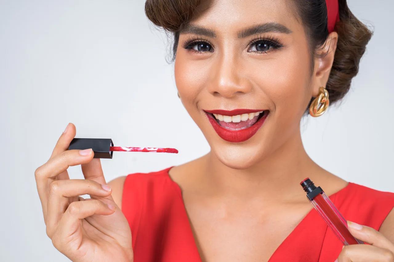 ✔️رنگ رژلب یکنواخت و صاف روی لب قرار گیرد